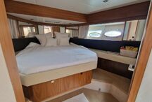 Cette unité sportive et élégante est équipée de trois cabines ( Master avec lit double + 2 cabines équipées de 2 lits simples chacune) et accueille très confortablement 6 passagers.