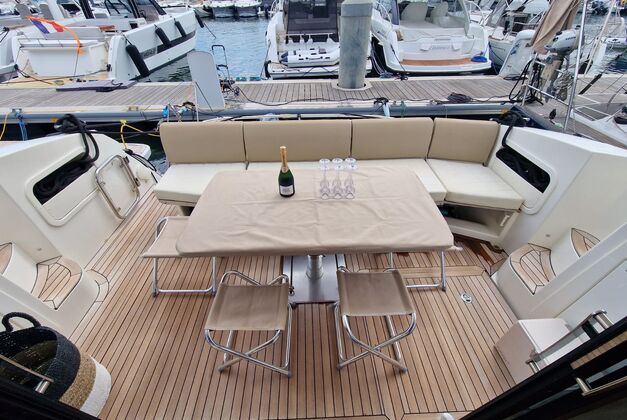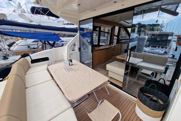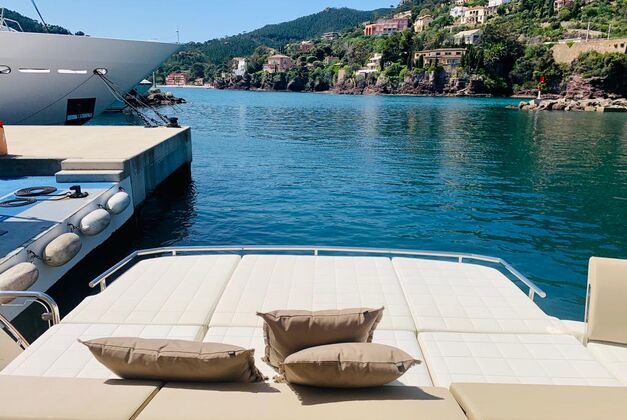 Un bain de soleil arrière modulable de 3 places, ainsi qu'un bain de soleil avant doté de 3 transats permettent aux 6 passagers embarqués, de profiter du soleil à l'avant ou de l'ombre à l'arrière.