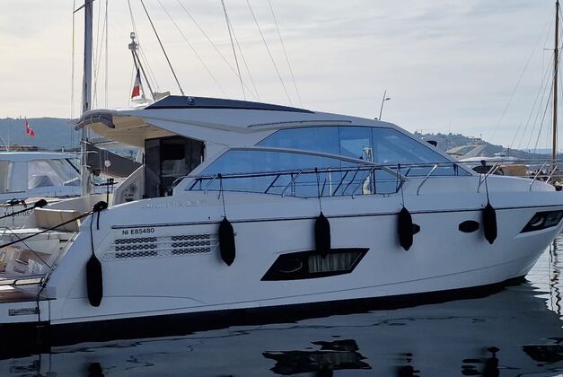 Très bel Absolute 43 STY Sport Yacht de 2013 (13,65 / 4,15 / 1,10) totalisant 520 heures. Propulsé par deux moteurs Volvo Penta D6 de 435 chevaux chacun, ce bateau bénéficie d'une très grande manœuvrabilité grâce au joystick de ses IPS 600 et son propulseur d'étrave.