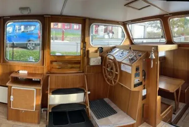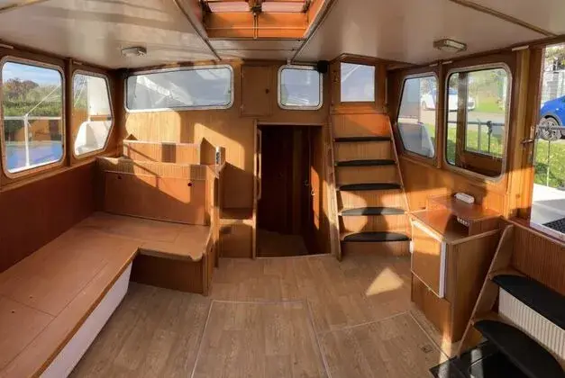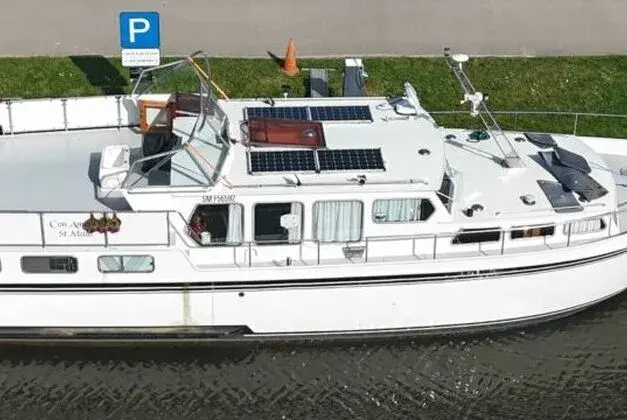 Très belle vedette Hollandaise De Merenpoort de 1991, dimensions 14,50 m x 4,20 m, moteur Ford Leman 105 cv. Le bateau a été expertisé, intégralement repeint en 2024/2025 par un chantier professionnel en vue de la vente, les travaux de chaudronnerie exigés ont été effectués. Les frais de peinture seuls s'élèvent à 44000€. Ses propriétaires ont par précaution enlevé du bateau ces dernières semaines coussins et matelas, bien stockés au sec en entrepôt. Tous les matelas sont neufs. Tout le confort attendu est présent dans cette volumineuse unité de trois cabines + un vaste dressing. La terrasse arrière de 16m2 est couverte par un taud complet en très bon état qui constitue un vaste espace de vie supplémentaire. Bateau très bien aménagé et équipé.