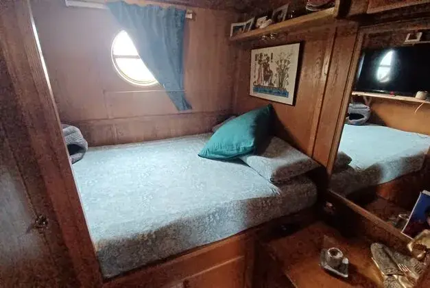 1 grand carré avec salon donnant sur 1 très jolie cuisine aménagée, nombreux rangements, 1 cabine principale avec 1 grand lit, 1 cabine avec 2 lits, 1 grande salle de bain avec 1 vraie douche. Le bateau est bien équipé :