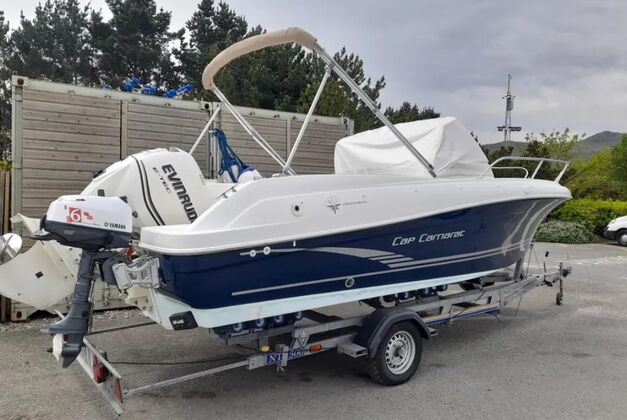 Nous avons le plaisir de vous présenter un Jeanneau Cap Camarat 6.5 WA. Ce bateau est livré avec de nombreux extras, notamment le chauffage Webasto, les languettes automatiques Zipwake, le guindeau électrique, les commandes de vol filaires, le bimni et la couverture complète du camping-car (neuf) ainsi qu'une remorque routière freinée. Équipé d'un hors-bord Evinrude 200HP E Tech et d'un pack de navigation Raymarine, ce bateau est idéal pour la croisière, le remorquage et la détente. Réputée pour son confort sans compromettre la fonctionnalité, la série Cap Camarat WA offre beaucoup de cockpit et d'espace utilisable au-dessus du pont avec des logements supplémentaires en dessous.