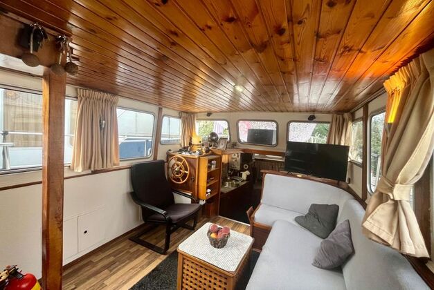 Jolie Vedette Hollandaise de 1988 en très bon état, dimensions 10,50 m x 3,54 m, homologuée 6 personnes à bord, moteur Peugeot Indénor Turbo-diesel de 64 cv qui a seulement 3827 heures.