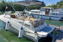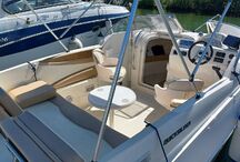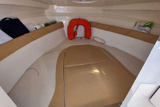 Radio fusion, GPS, panneau de pont, douche de cockpit, compte tours-speedo-jauge essence, échelle inox, plage arrière, bain de soleil arrière, siège copilote, table, matériel de sécurité, 2 couchages, sellerie parfait état, antifouling. Le prix comprend la remorque RSA double essieux Ptac 2120 kg de 2009.