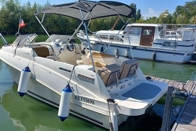 Beau Quicksilver 640 Cruiser de 2011 en très bon état, Dimensions 5,94 m x 2,49 m, moteur Mercruiser 135cv avec 200 h d’origine, uniquement navigation en eau douce, entretien régulier (factures). Nombreux équipements :